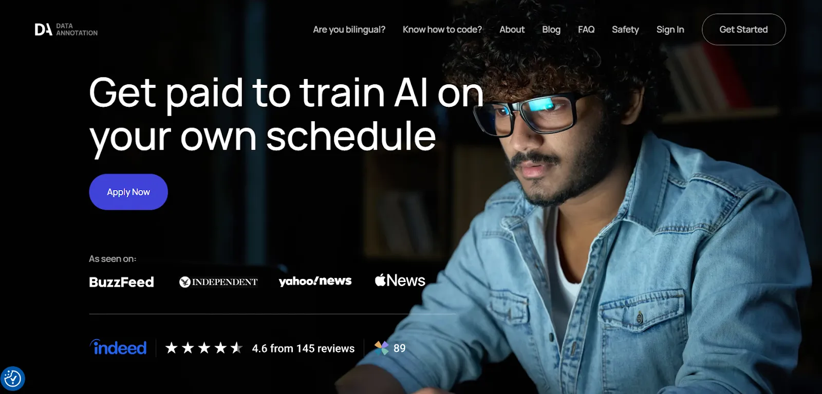 - Visit the DataAnnotation application page and click “Apply”
